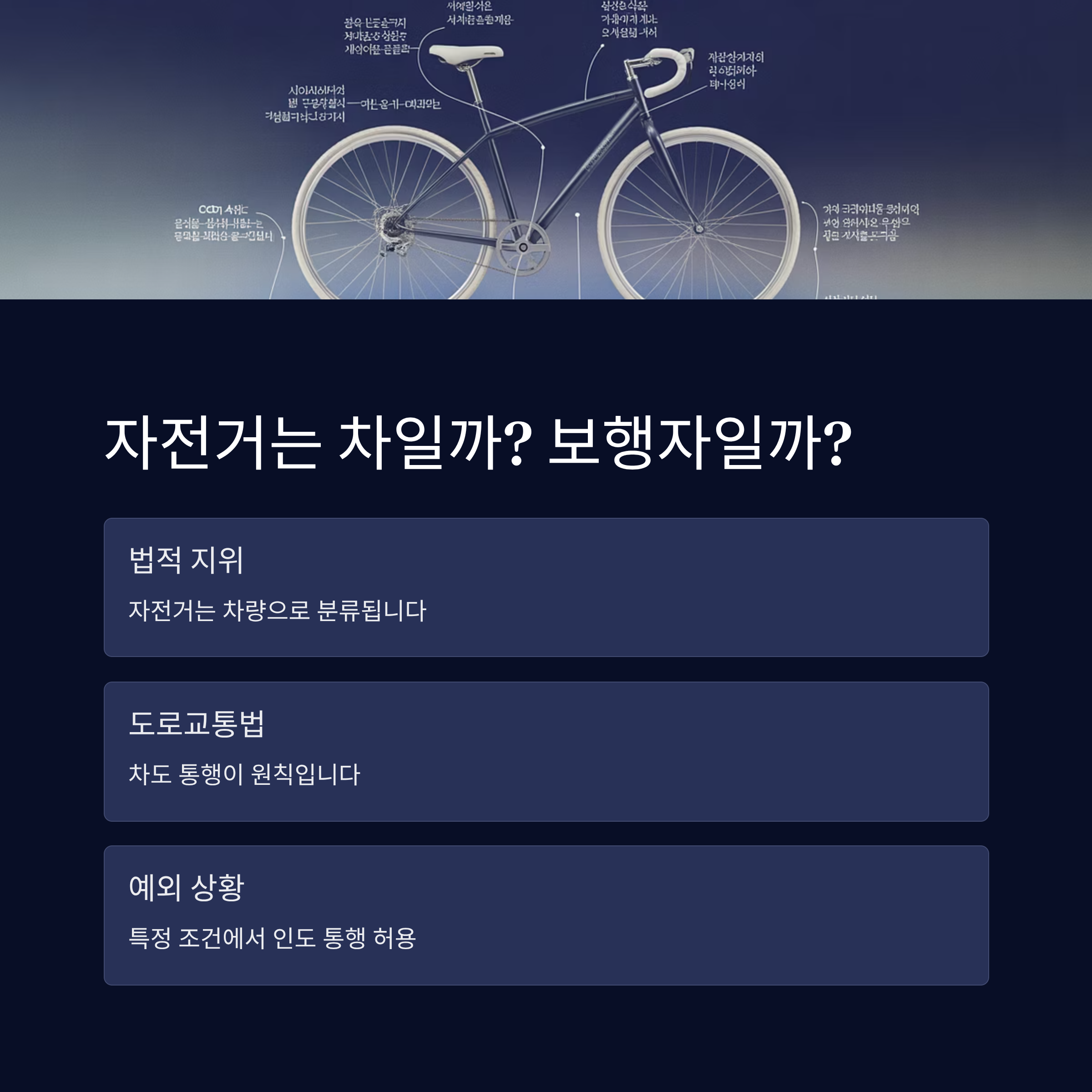 도로교통법 제2조에서는 자전거를 명확히 ‘차’로 분류하고 있어요. 하지만 현실에서는 많은 사람들이 인도에서 자전거를 타고 다니고, 경찰도 이를 강력하게 단속하지 않는 경우가 많아요. 이런 모호한 상황이 헷갈림을 더 키우는 거죠.