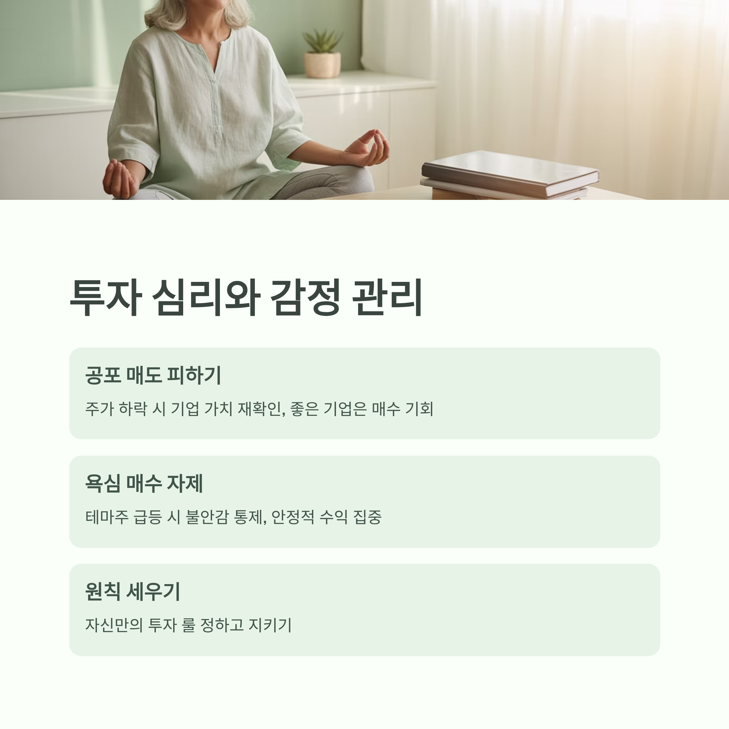 주식 투자는 돈의 문제가 아니라 감정의 싸움이라는 말이 있어요. 고령자 투자자에게도 마찬가지예요. 특히 시장이 하락할 때 두려움에 팔거나, 갑자기 급등하는 종목을 보고 따라 사는 건 손실로 이어지기 쉬워요. 그래서 감정을 다스리고 냉정하게 판단하는 습관이 정말 중요해요.