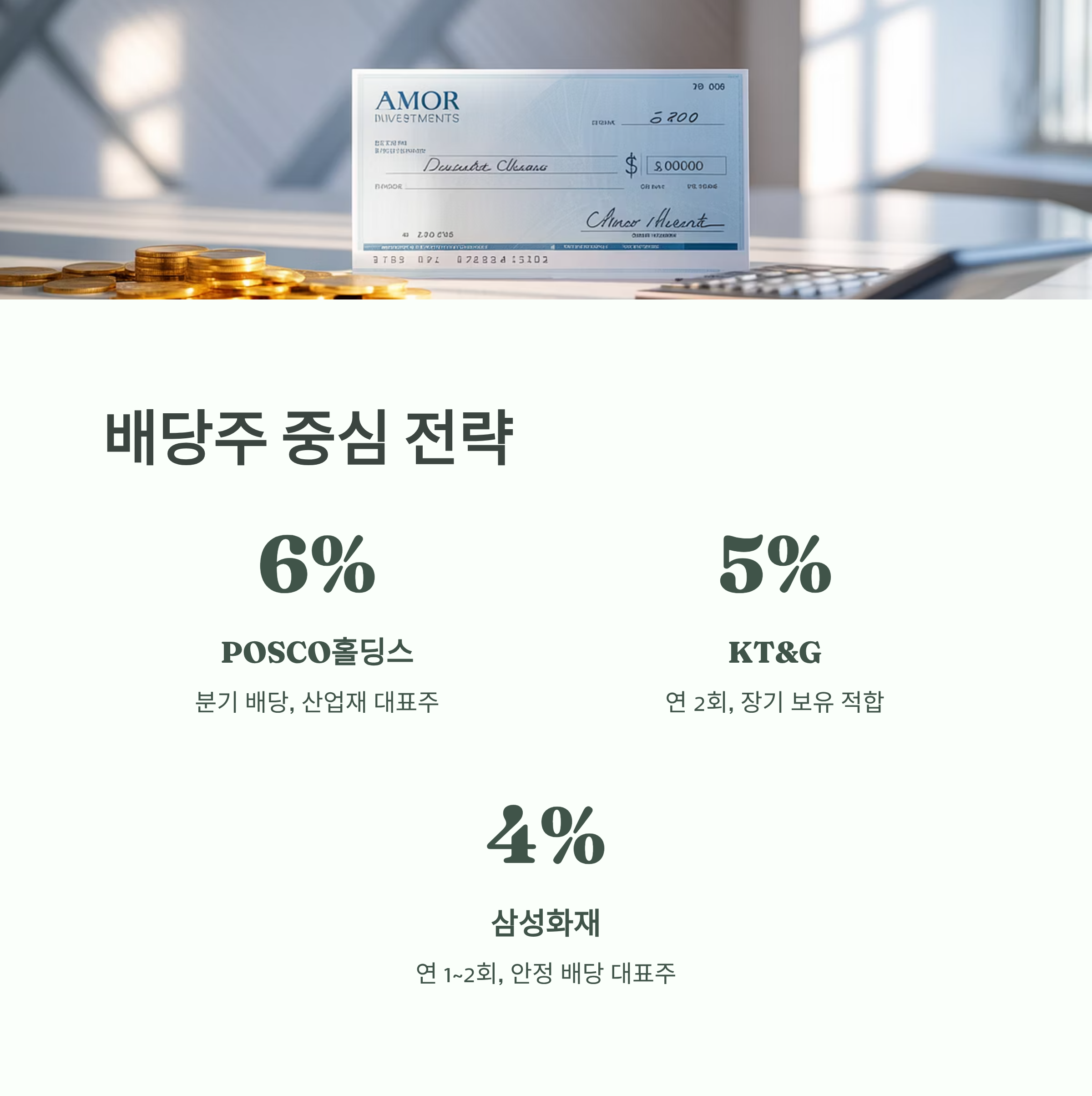 이런 식으로 구성된 포트폴리오는 수익과 안정성의 균형을 맞출 수 있어요. 이제 다음 파트에서는 특히 고령자에게 유리한 투자법인 '배당주 중심 전략'에 대해 알려드릴게요.