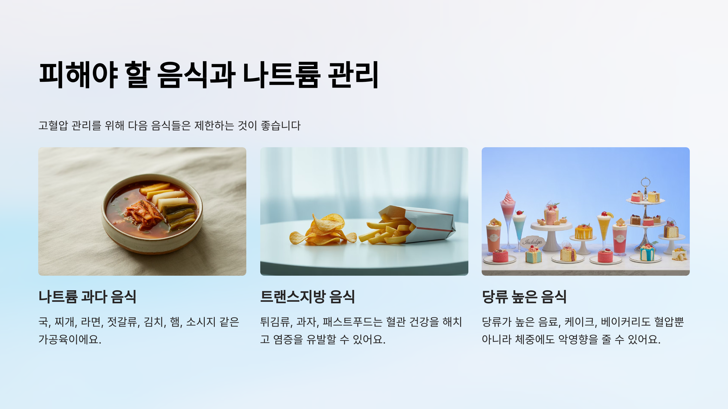 피해야 할 음식만 잘 피해도 고혈압은 훨씬 쉽게 관리할 수 있어요. 건강은 습관에서 시작돼요 😌