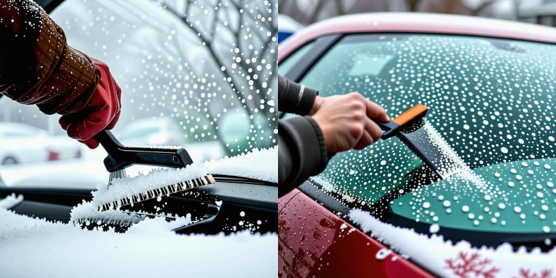성에 제거용 스크레이퍼로 앞유리를 깨끗이 청소합니다.