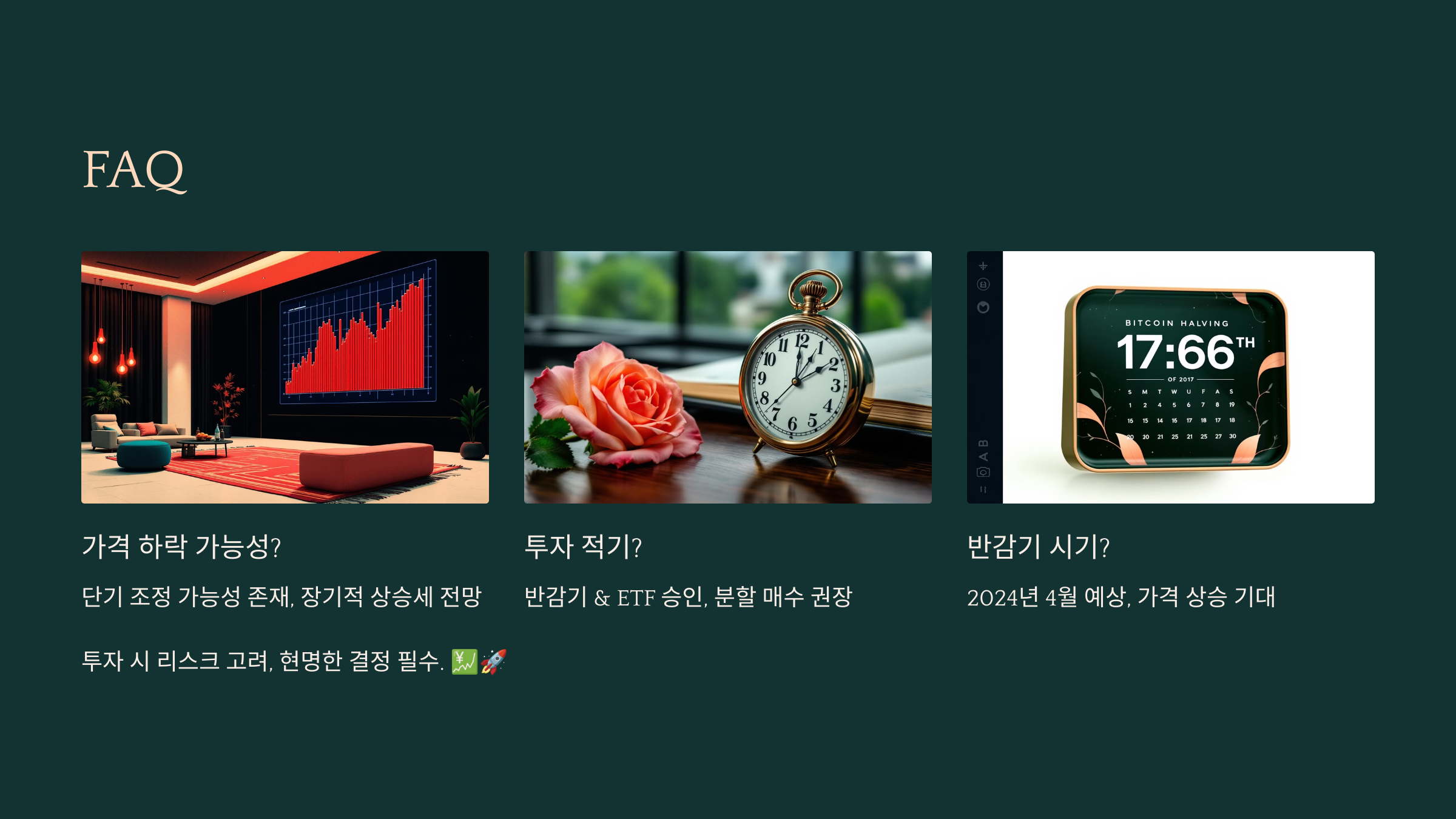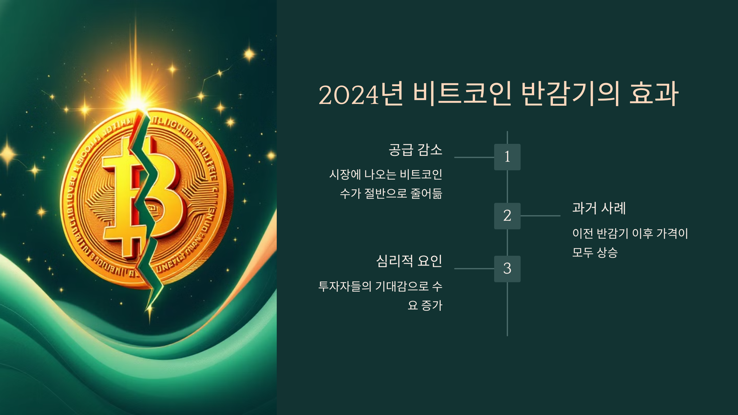 ✔️ 2024년 비트코인 반감기: 비트코인은 약 4년마다 채굴 보상이 절반으로 줄어드는 반감기를 맞아요. 이로 인해 공급이 제한되면서 가격이 상승하는 경향이 있어요.