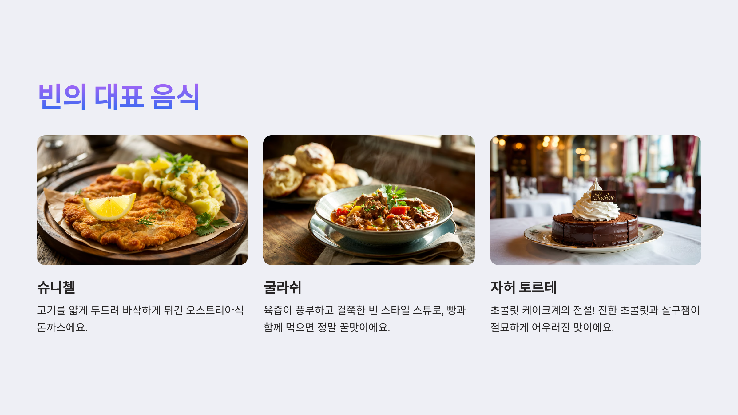 A3. 슈니첼과 자허 토르테는 무조건 맛봐야 해요! 🍰