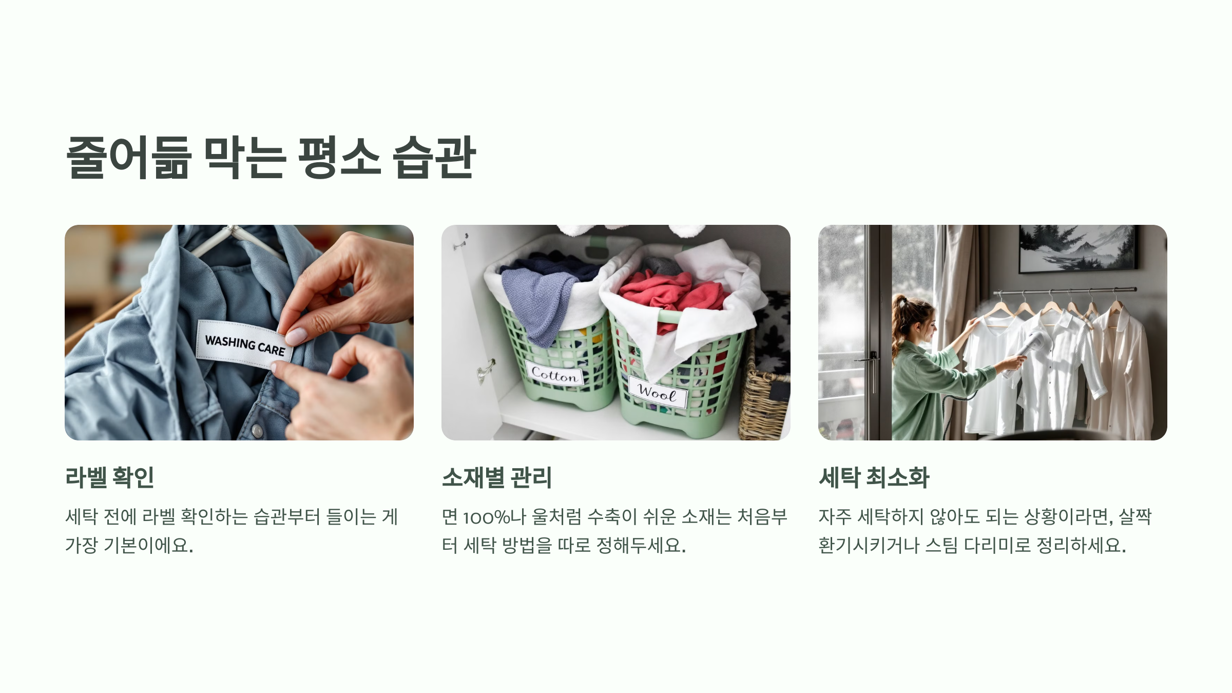 매번 옷 줄어들까 걱정하기보다, 이런 습관 몇 가지만 유지해도 옷 관리가 훨씬 수월해져요.