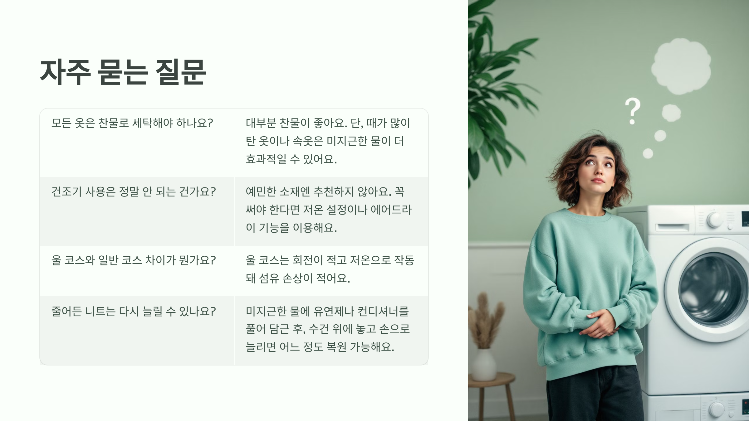 Q1. 모든 옷은 찬물로 세탁해야 하나요