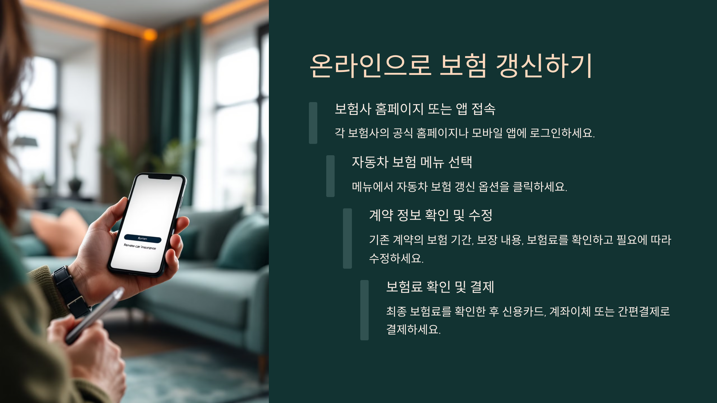 다음으로는 더 빠르고 간편하게 **온라인으로 보험 갱신하는 방법**을 알려드릴게요.📱💸
