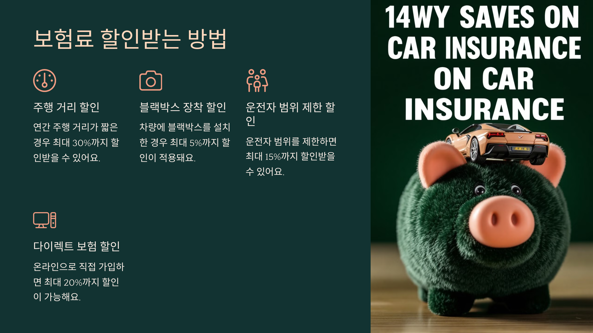 다음으로는 더 저렴하게 보험료를 낼 수 있는 **보험료 할인받는 방법**을 알려드릴게요.💸🔥