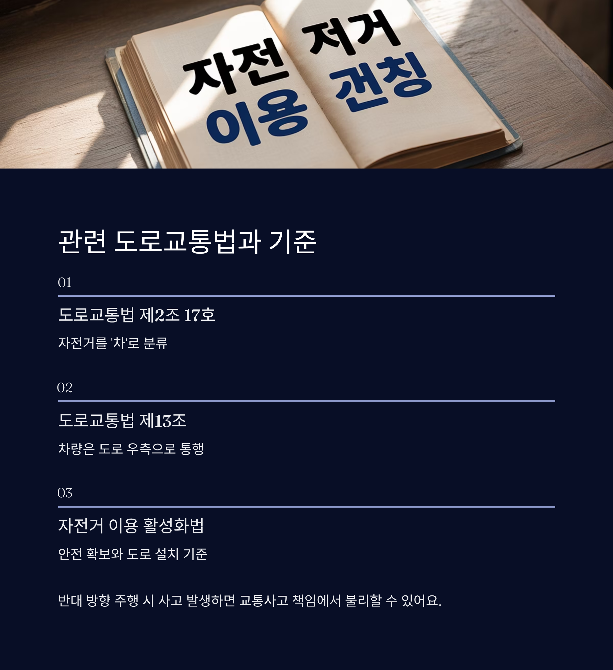 만약 반대 방향으로 주행하다 사고가 발생한다면, 교통사고 책임에서 불리할 수 있어요. 실제로 판례에서도 자전거 이용자가 통행 방향을 지키지 않아 사고가 발생한 경우, 일정 부분 과실이 인정된 사례가 있어요.