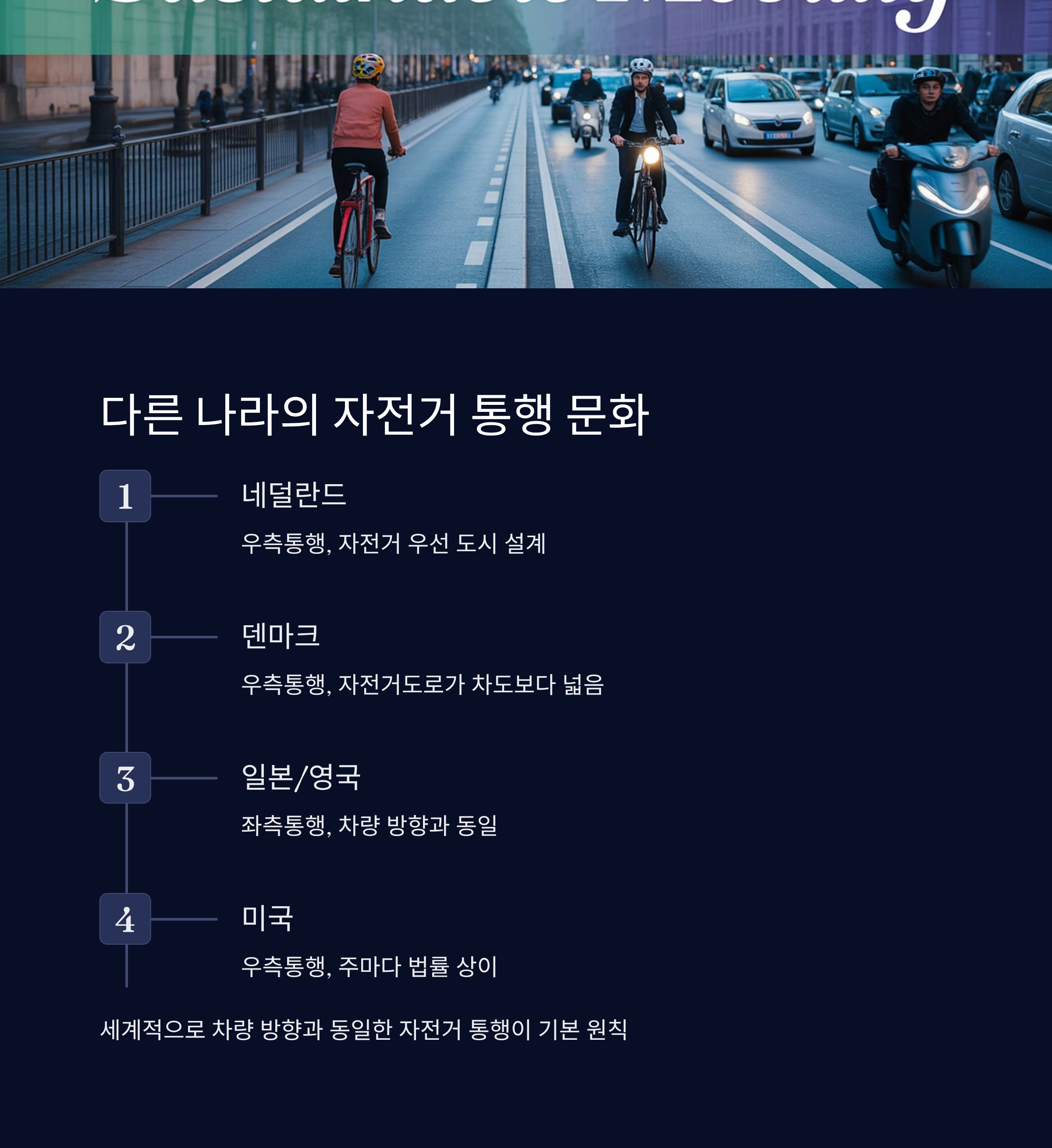 🌍 세계 주요국 자전거 통행 방향 비교표