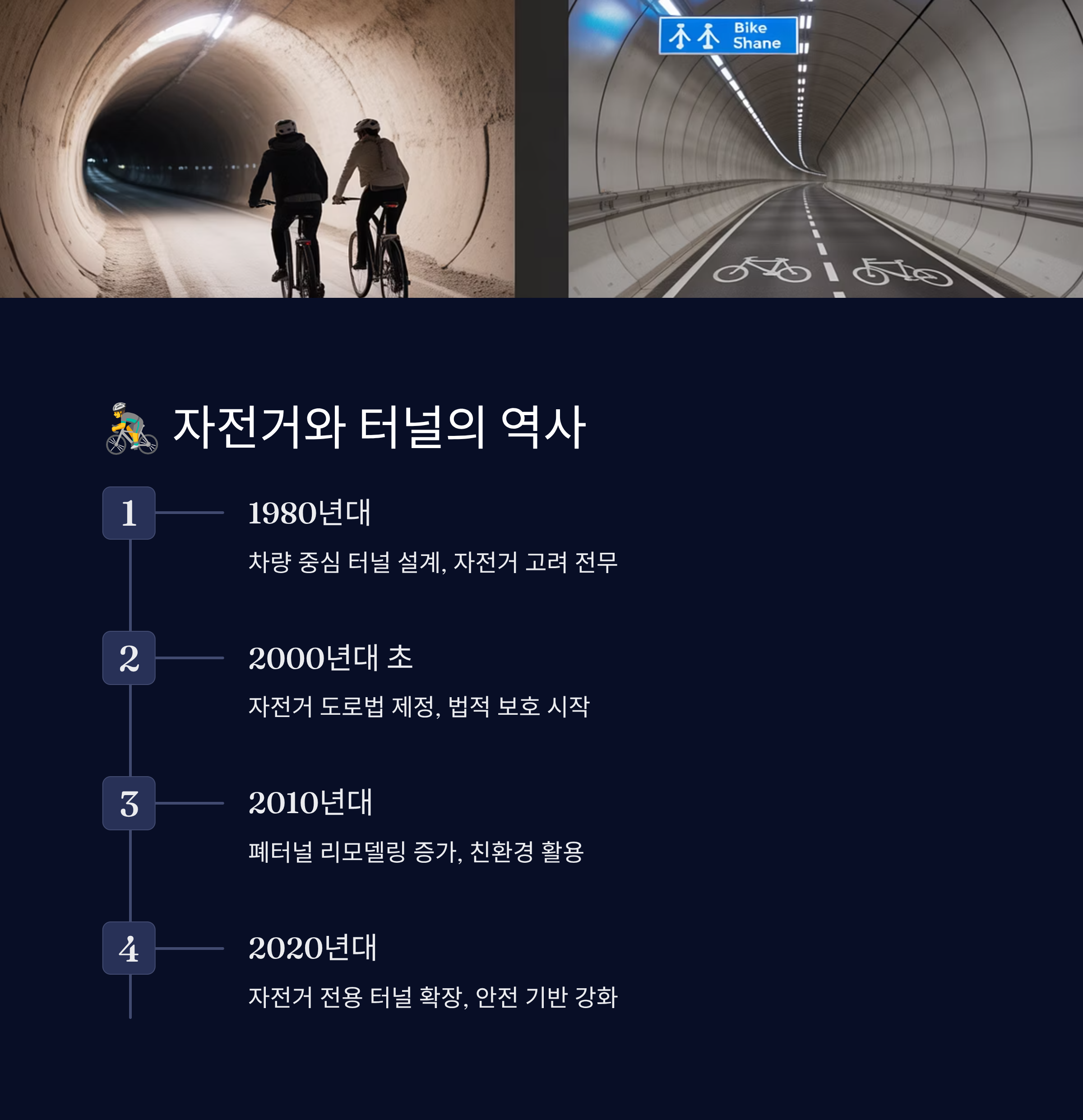 이런 역사적 흐름 덕분에 오늘날 우리는 자전거와 터널이 함께할 수 있는 가능성을 더 많이 가지게 되었어요. 과거엔 상상도 못 했던 ‘자전거로 터널 투어’도 가능한 시대가 된 거죠! 😊