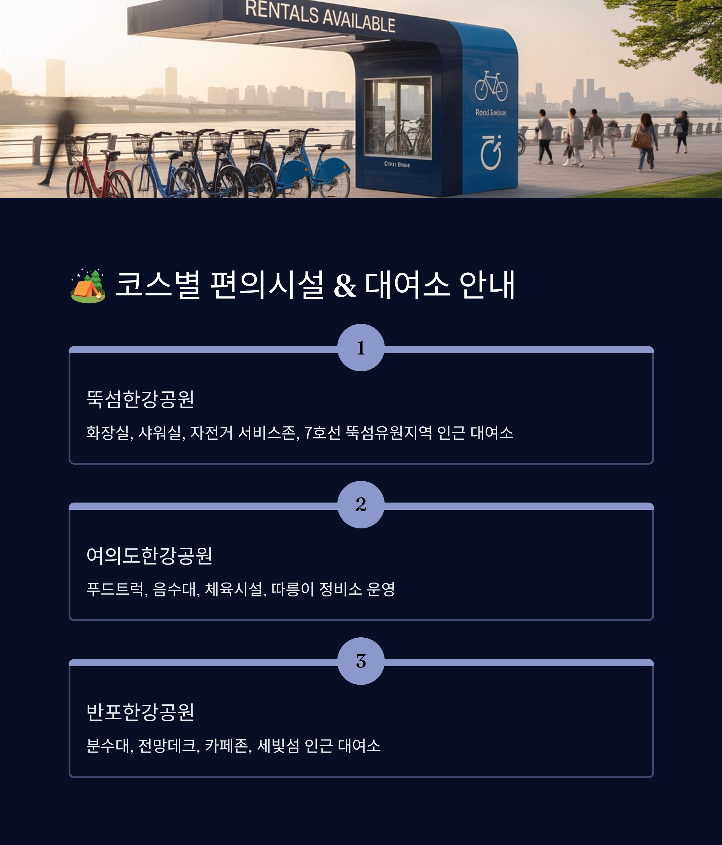 🚉 주요 한강 자전거 대여소 및 편의시설 정리
