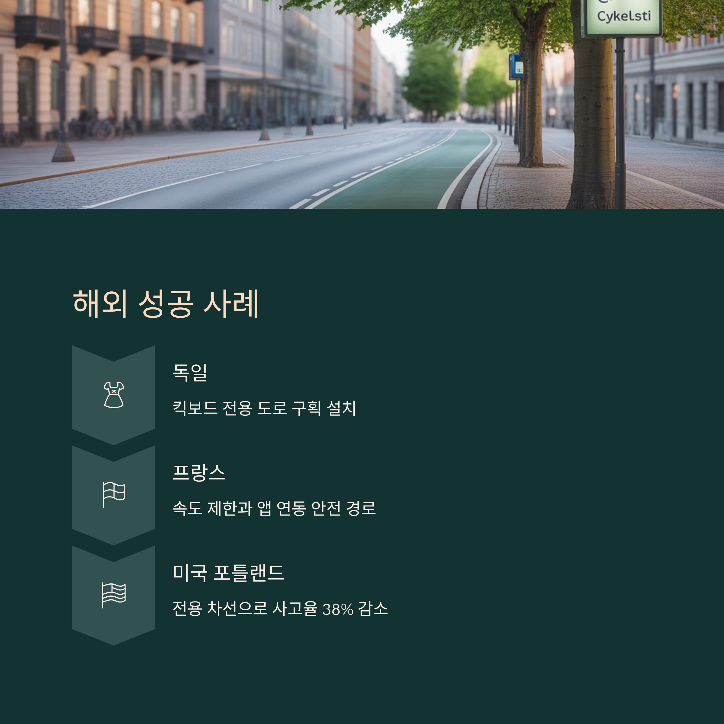 미국 포틀랜드의 경우, 자전거 도로를 세분화해 킥보드 전용 차선을 별도로 설치했어요. 이에 따라 사고율이 38% 감소했고, 시민들의 만족도도 2배 이상 상승했어요. 이를 통해 전동킥보드와 자전거의 갈등은 공간 재설계만으로도 상당 부분 줄일 수 있음을 보여줘요.