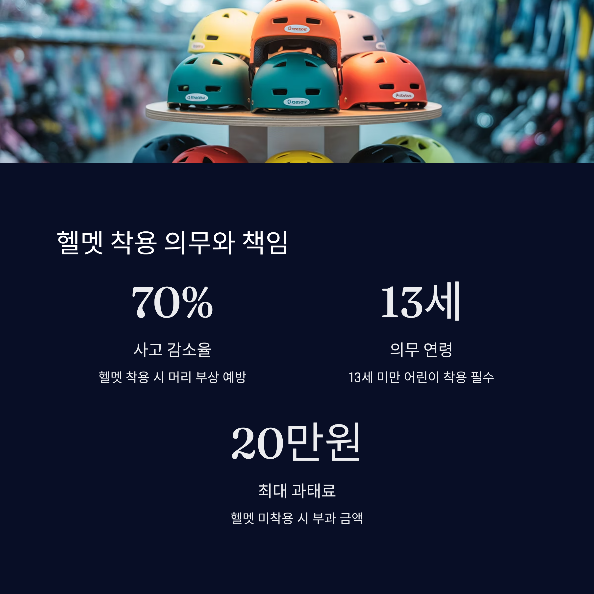 아이들이 싫어한다고 해서 헬멧 착용을 생략하면, 사고 발생 시 부모의 책임이 커질 수 있어요. 법적으로 과태료는 없지만, 민사소송에서는 “주의의무 위반”으로 불리하게 작용할 수 있어요. 아이가 헬멧을 자연스럽게 쓰도록 평소부터 습관화하는 게 좋아요.