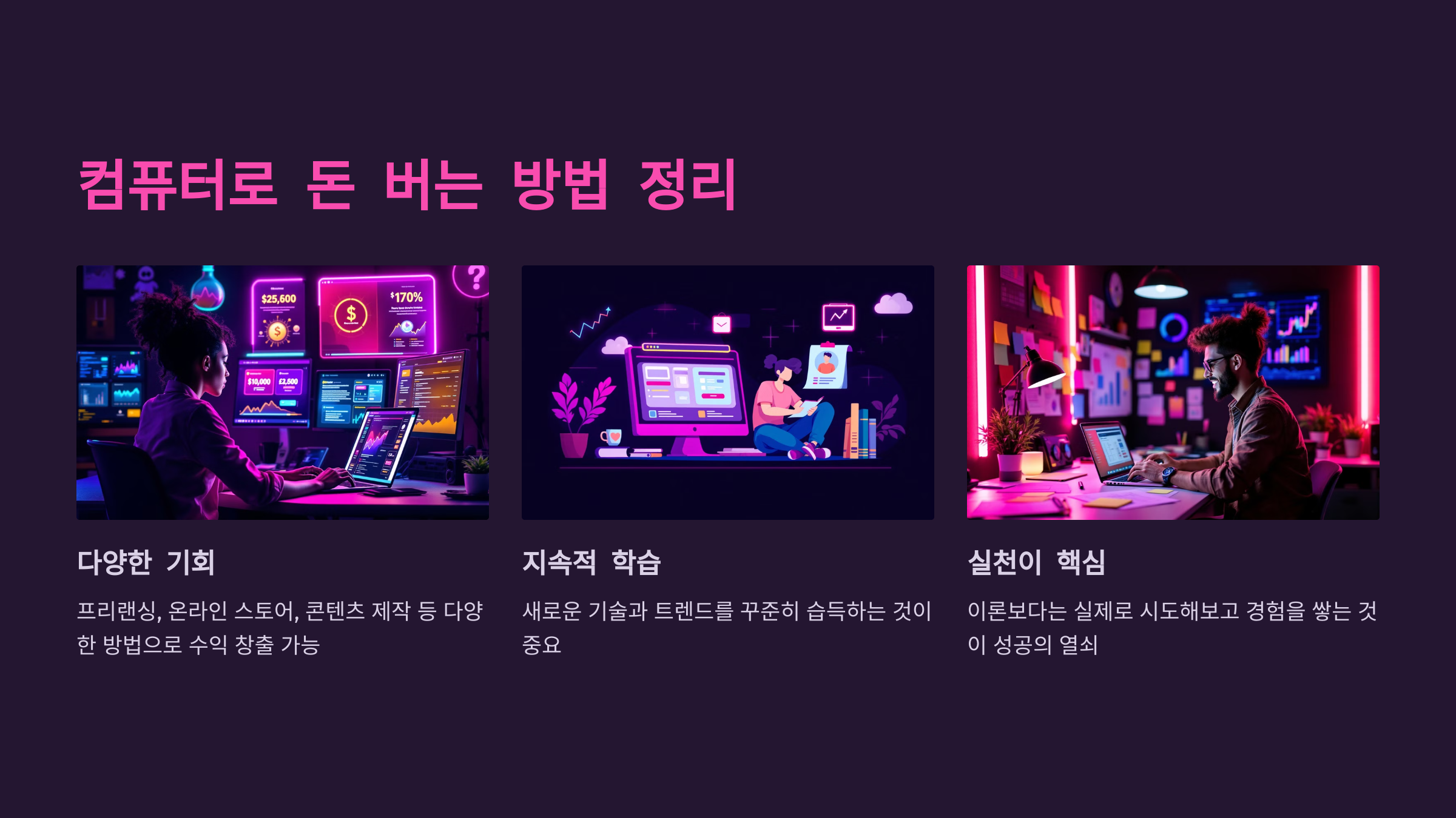 컴퓨터와 인터넷은 현대 사회에서 새로운 수입원을 창출할 수 있는 무궁무진한 가능성을 제공해요. 단순히 기술적인 전문가만이 아니라, 누구나 적절한 도구와 전략을 활용하면 컴퓨터를 통해 돈을 벌 수 있어요.
