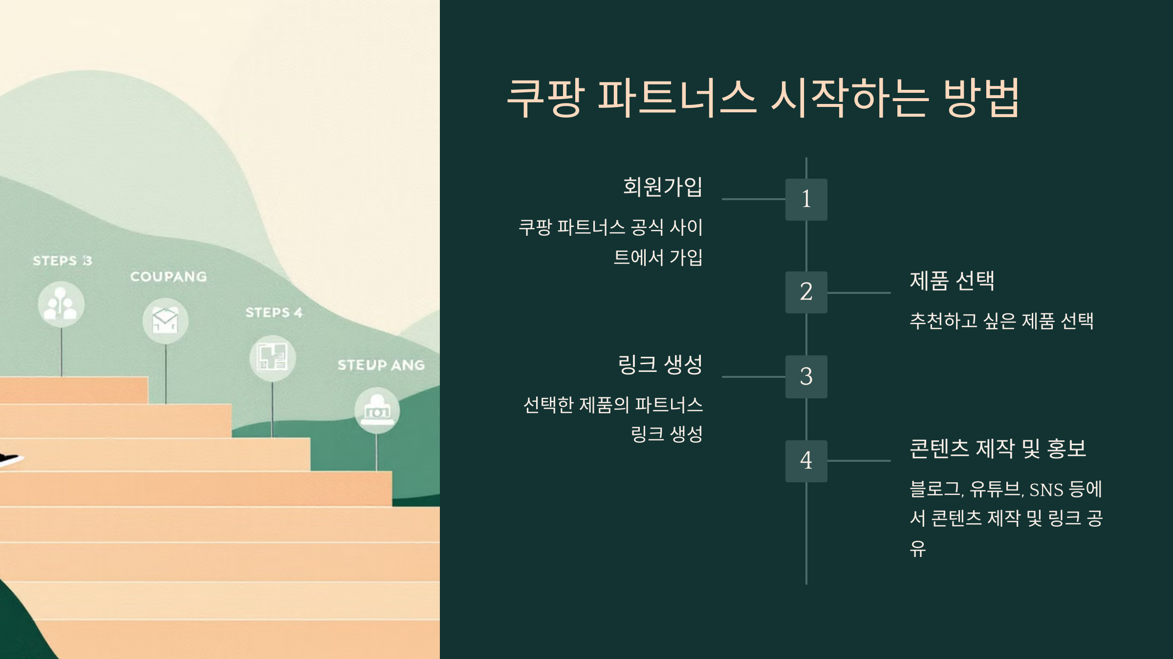 💡 쿠팡 파트너스를 시작하려면 몇 가지 단계를 거쳐야 해요. 누구나 쉽게 가입할 수 있고, 초기 비용이 들지 않기 때문에 부담 없이 도전할 수 있어요.