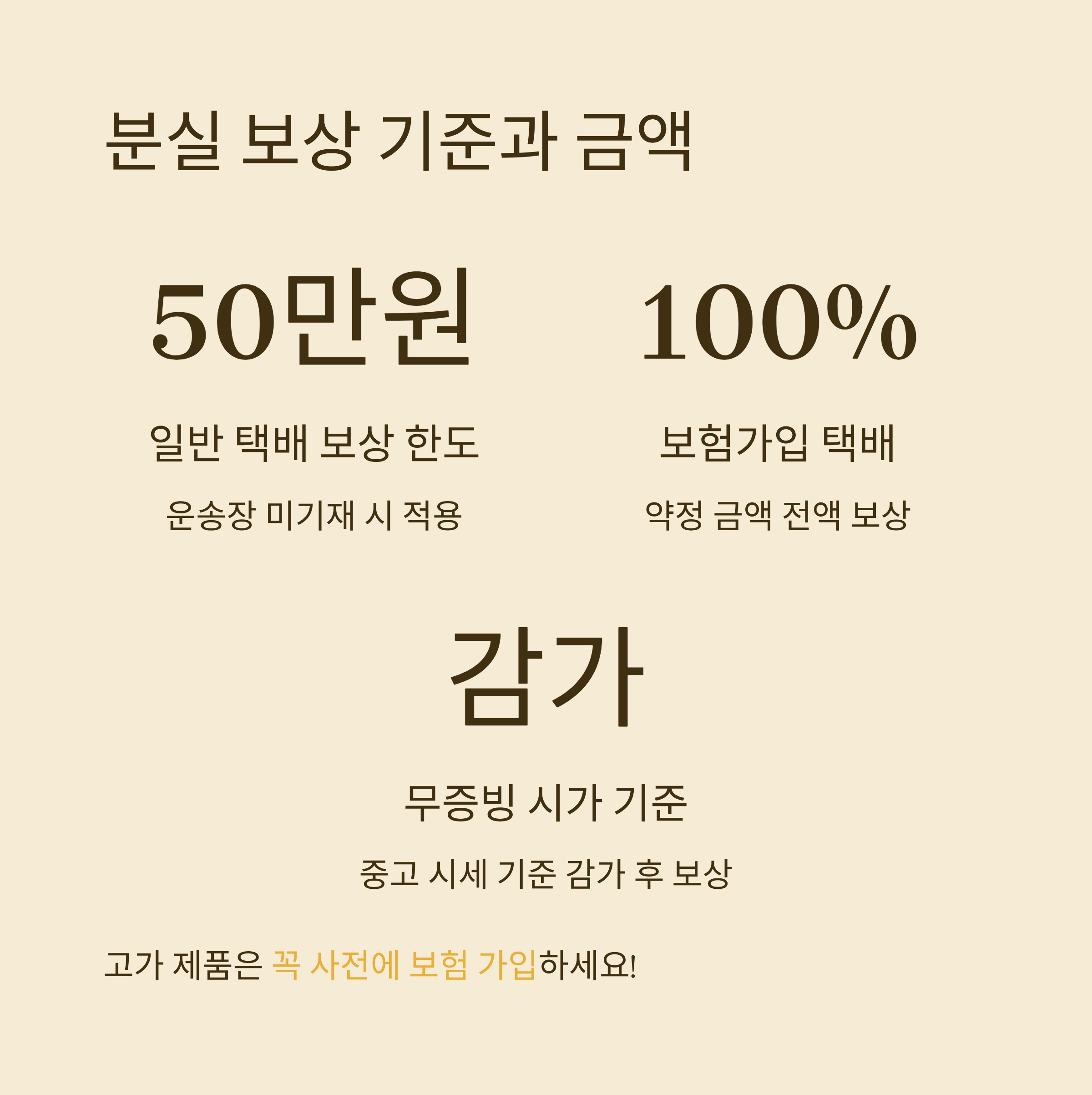 영수증 또는 거래내역 있음 | 구매 가격 기준 보상 | 최대 50만원 (일반) |