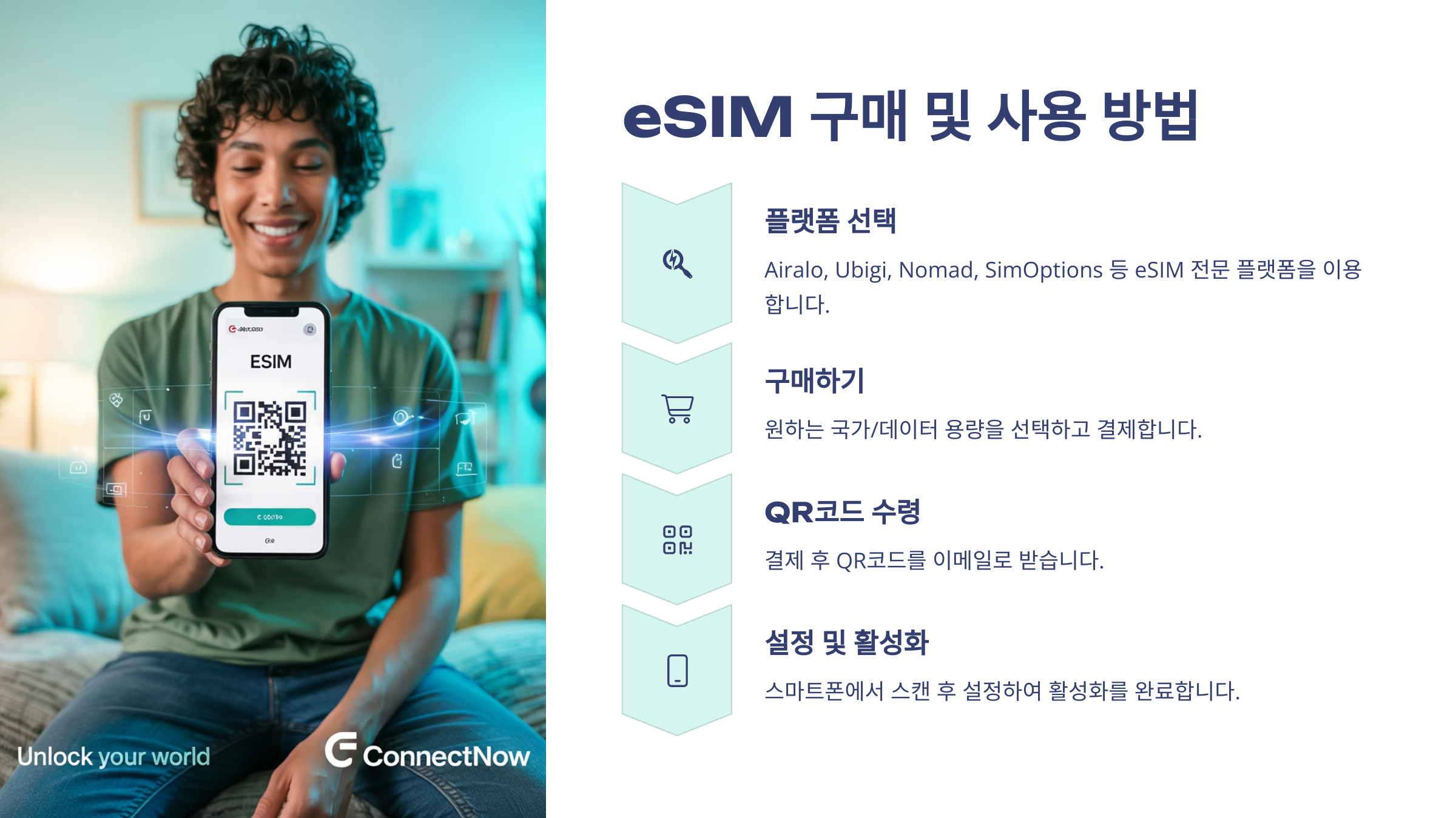 💡 장점: 유심 갈아낄 필요 없음, 여행 중 즉시 개통 가능