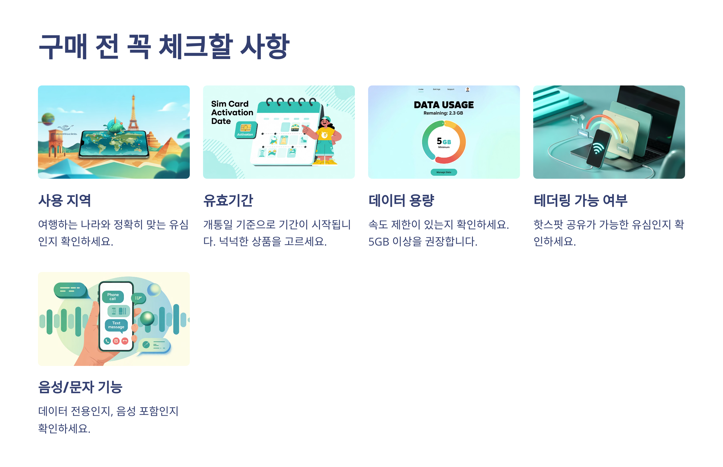 - 여행 국가와 날짜에 맞는 유심인지 꼭 확인하기
