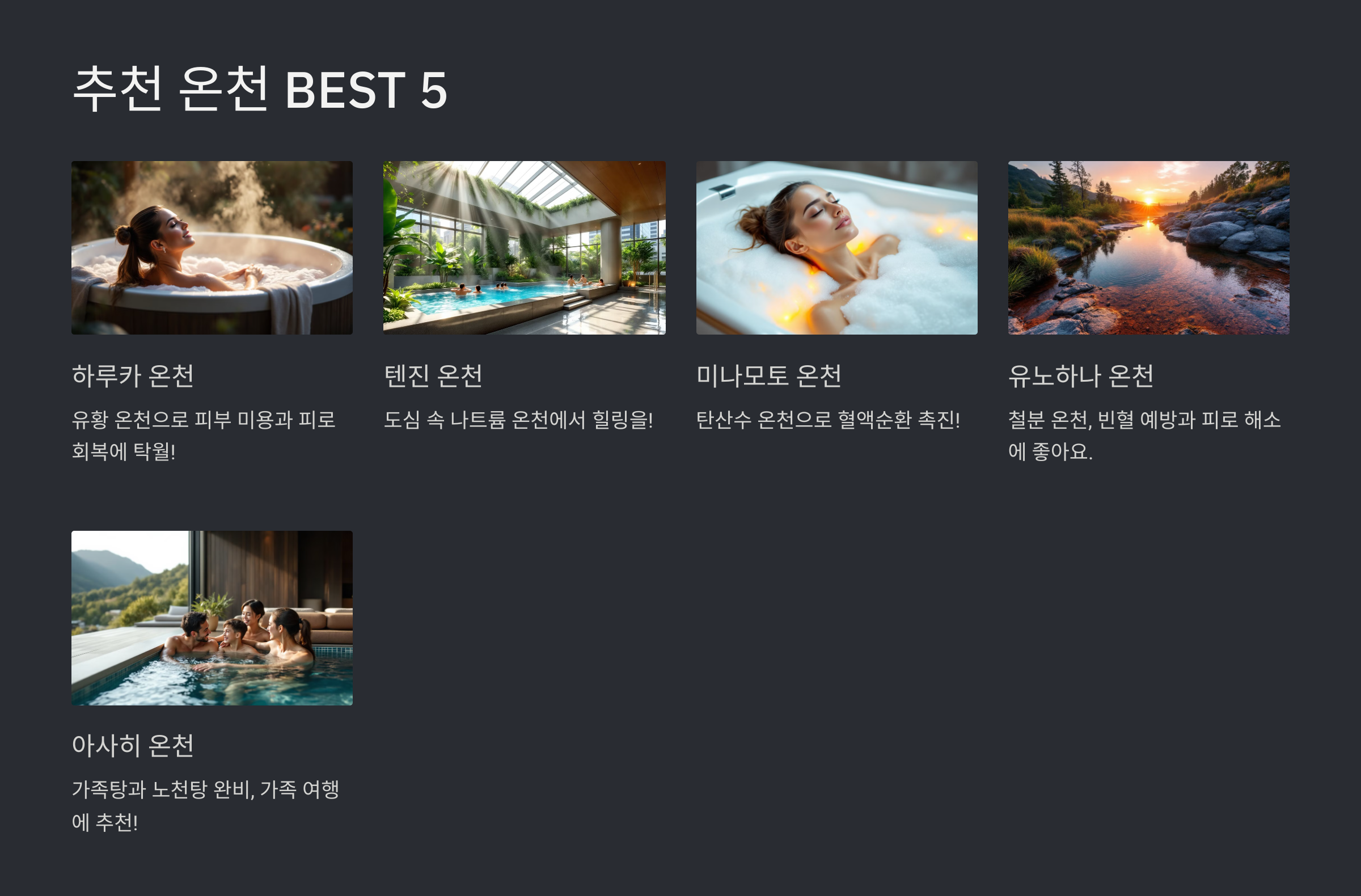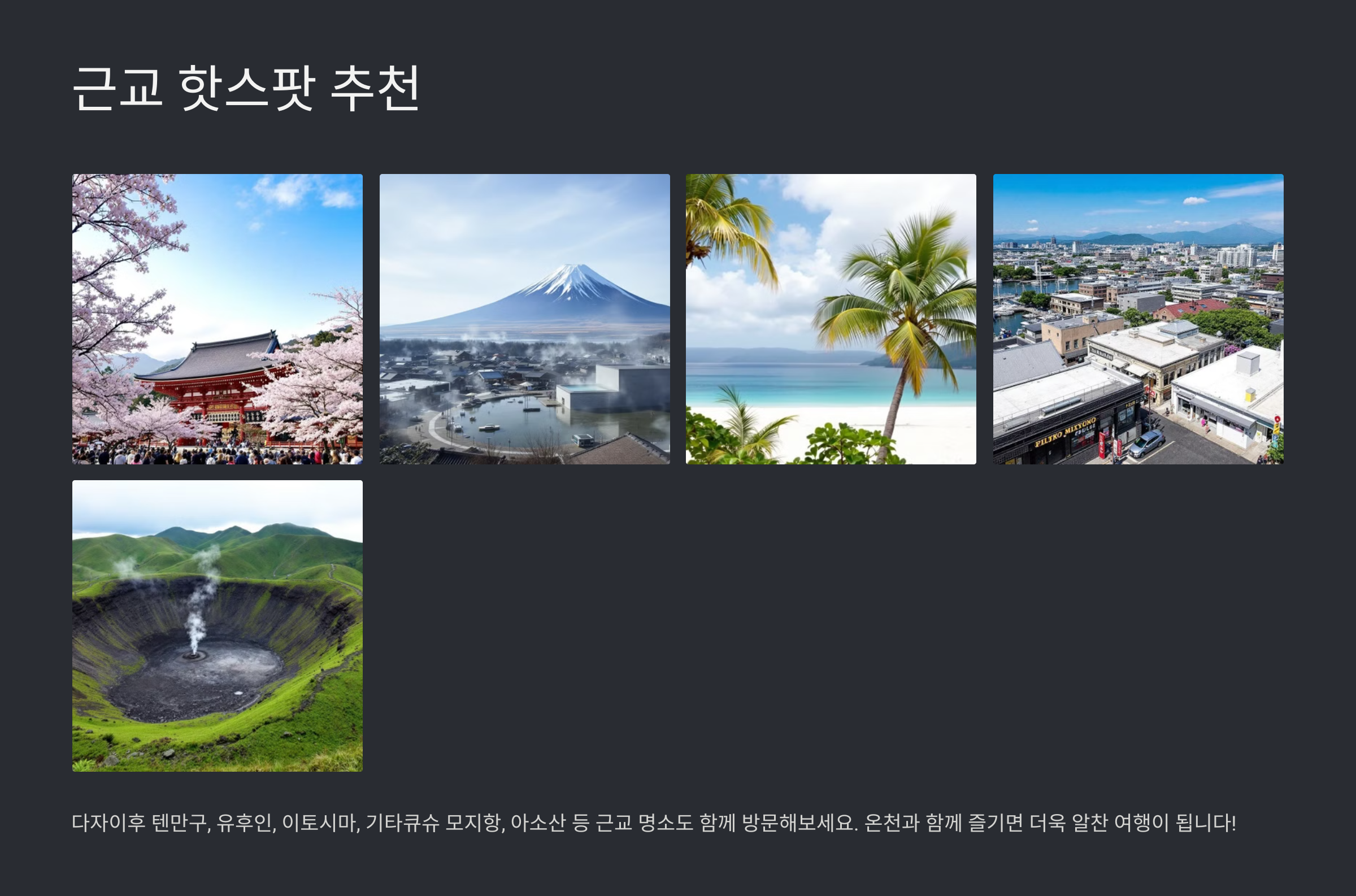 이 다섯 곳은 후쿠오카에서 온천을 즐기기에 딱 좋은 곳들이에요. 각 온천마다 특색이 다르니, 여행 스타일에 맞게 선택하면 더욱 만족스러운 온천 여행이 될 거예요! 😊♨️