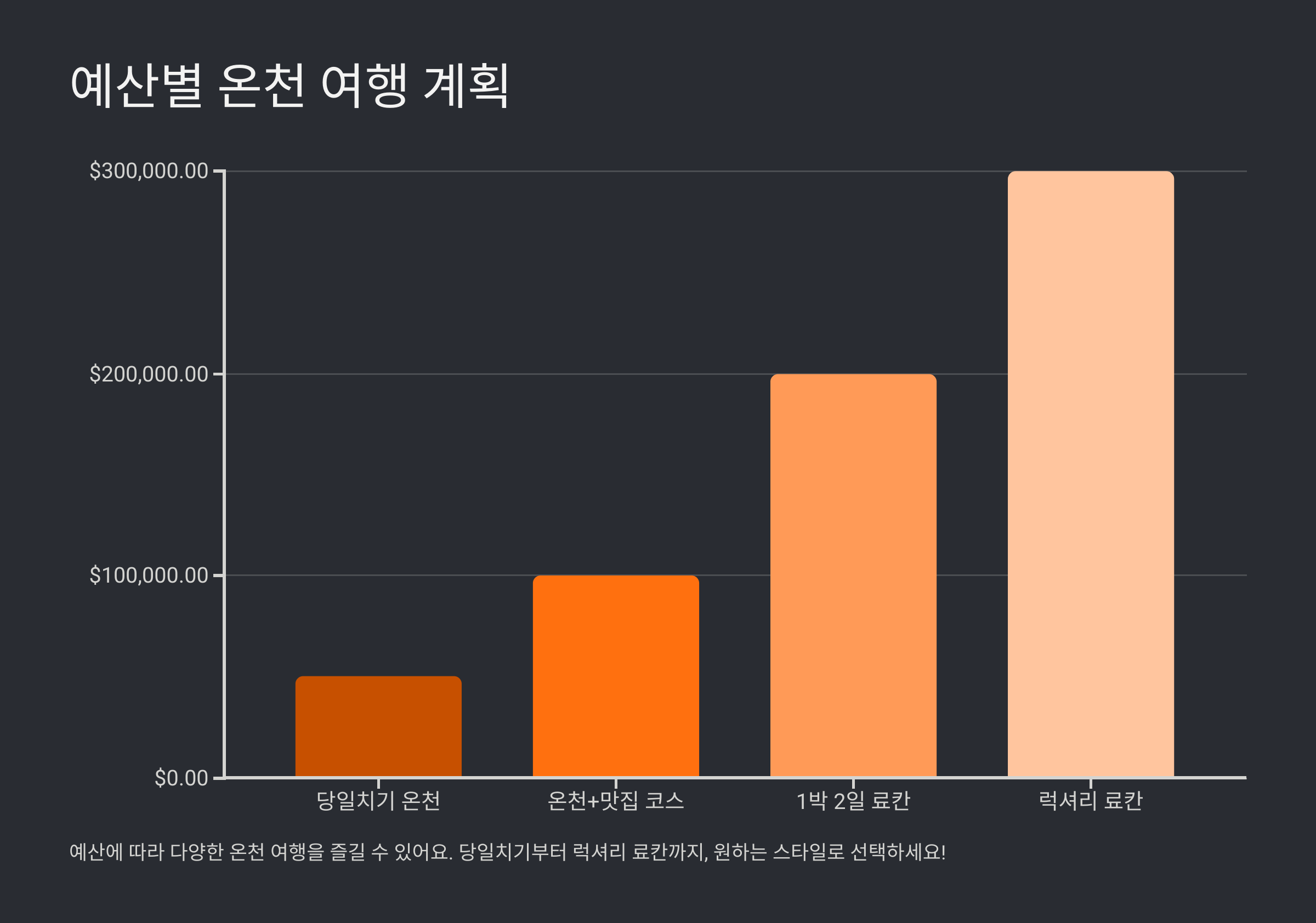 예산이 적다면 당일치기 온천을 추천하고, 조금 더 여유가 있다면 1박 2일 료칸 체험도 좋아요. 특히 료칸에서는 온천뿐만 아니라 가이세키 요리까지 즐길 수 있어서 더욱 만족스러운 여행이 될 거예요. 🍱♨️