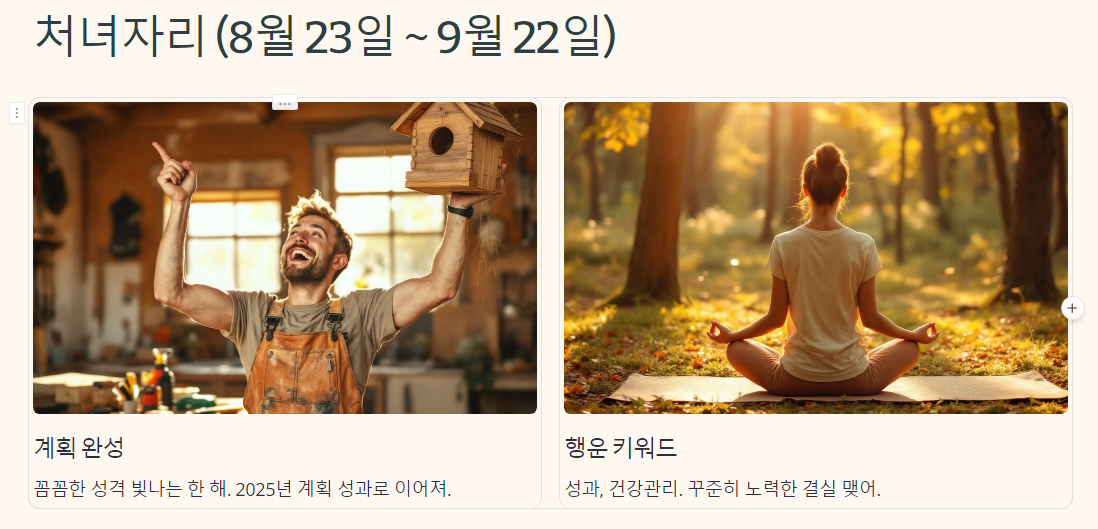 처녀자리의 꼼꼼한 성격이 빛을 발하는 한 해입니다. 특히 2025년은 계획했던 일이 성과로 이어지는 시기입니다. 꾸준히 노력했던 일들이 드디어 결실을 맺게 됩니다. 🌱