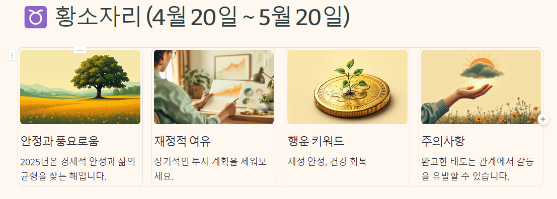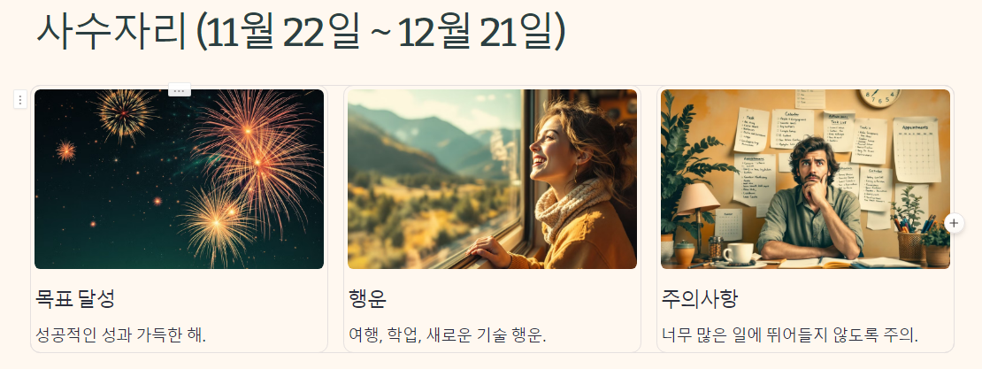 - 🚫 주의사항: 너무 많은 일에 한꺼번에 뛰어들지 않도록 유의하세요.
