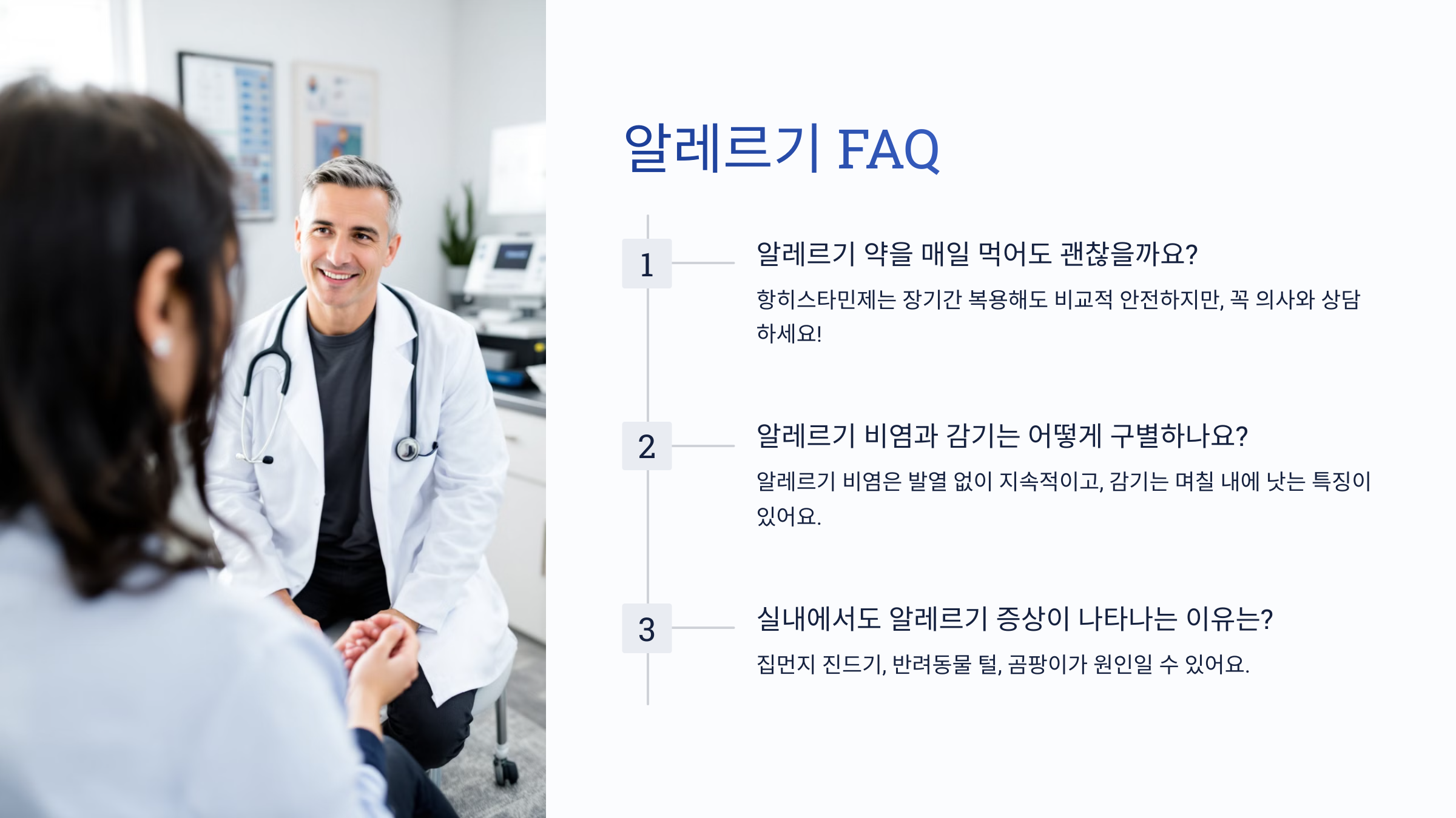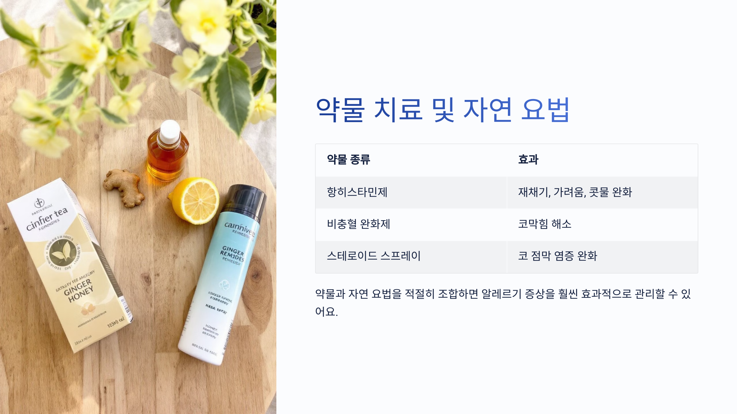 약물과 자연 요법을 적절히 조합하면 알레르기 증상을 훨씬 효과적으로 관리할 수 있어요. 😊