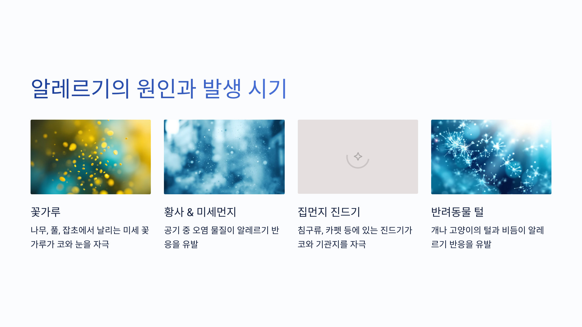 - 황사 & 미세먼지: 공기 중 오염 물질이 알레르기 반응을 유발