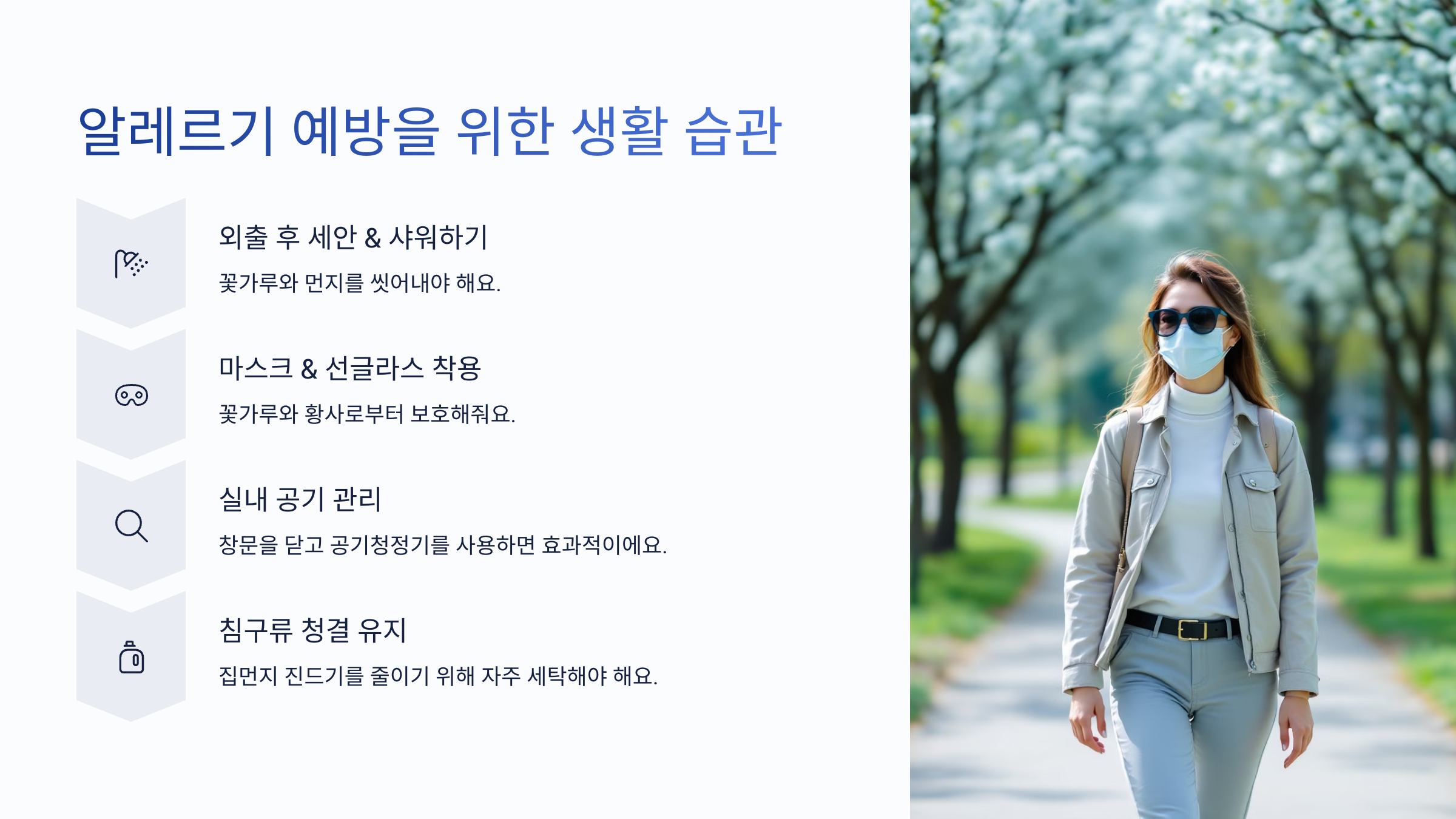 마지막으로, 알레르기 시즌을 더 편하게 보낼 수 있는 몇 가지 꿀팁을 알려드릴게요! 🌸