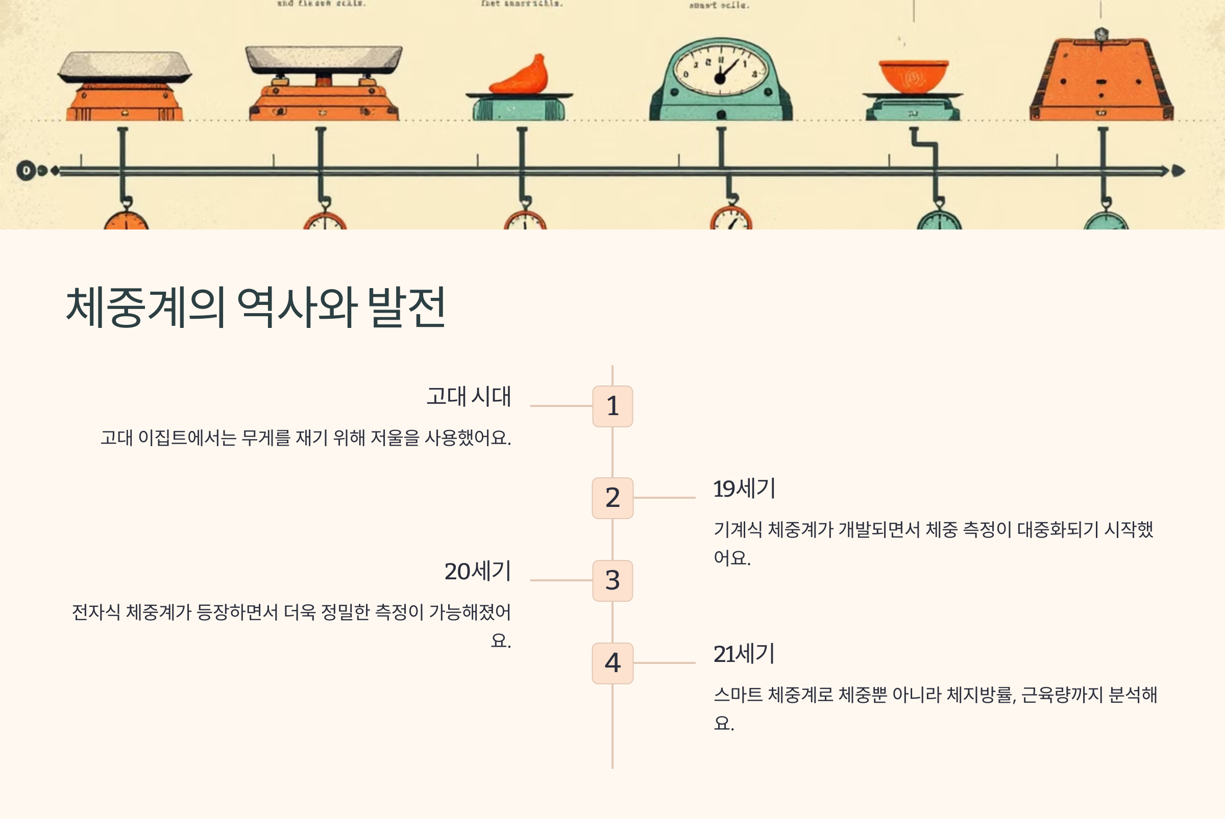 이처럼 체중계는 계속 발전해왔어요. 내가 생각했을 때, 요즘 스마트 체중계는 건강 관리를 위한 필수템으로 자리 잡은 것 같아요! 😃