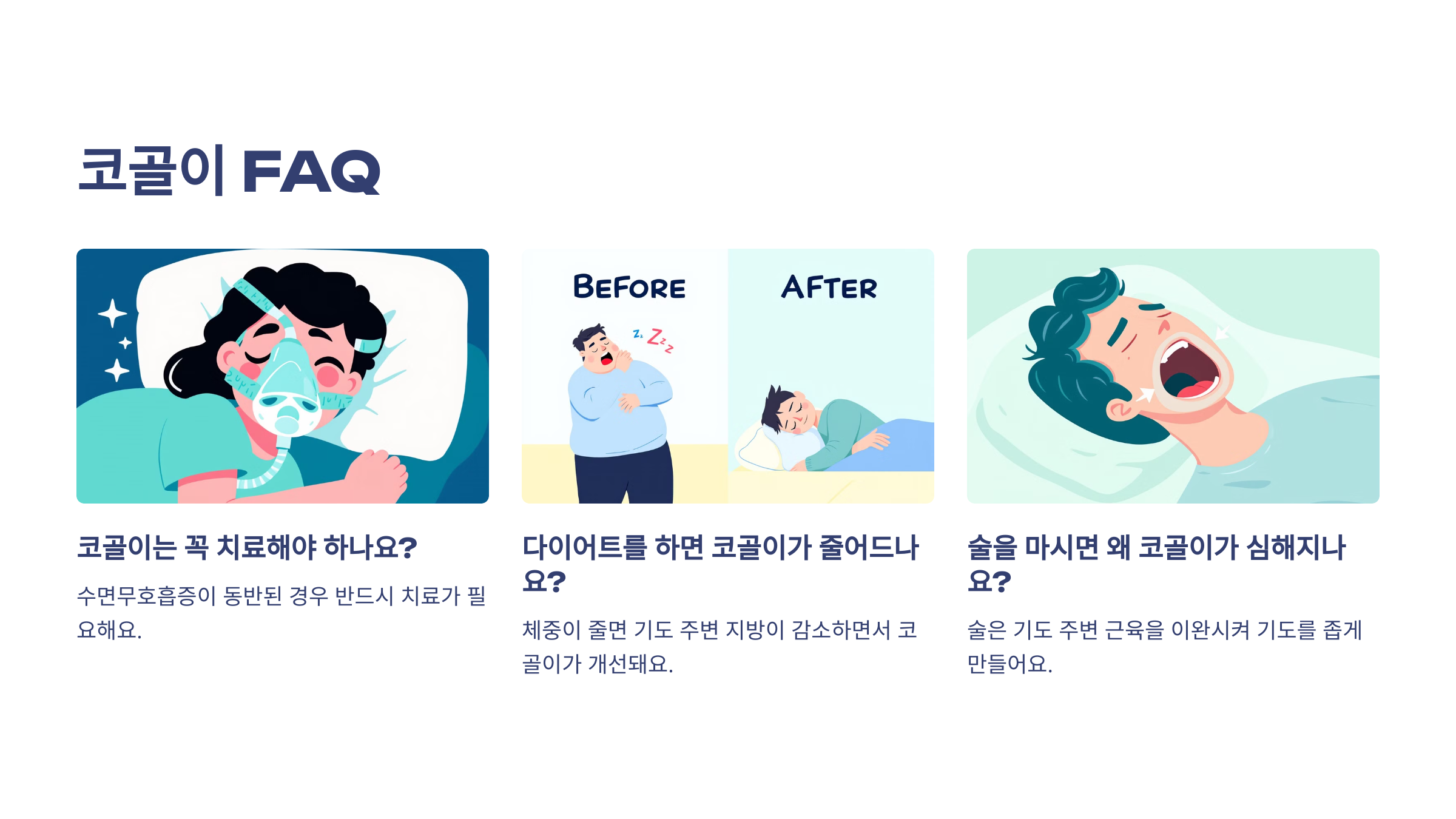 이제 코골이에 대한 궁금증을 해결하는 FAQ를 살펴볼까요? ⏭️