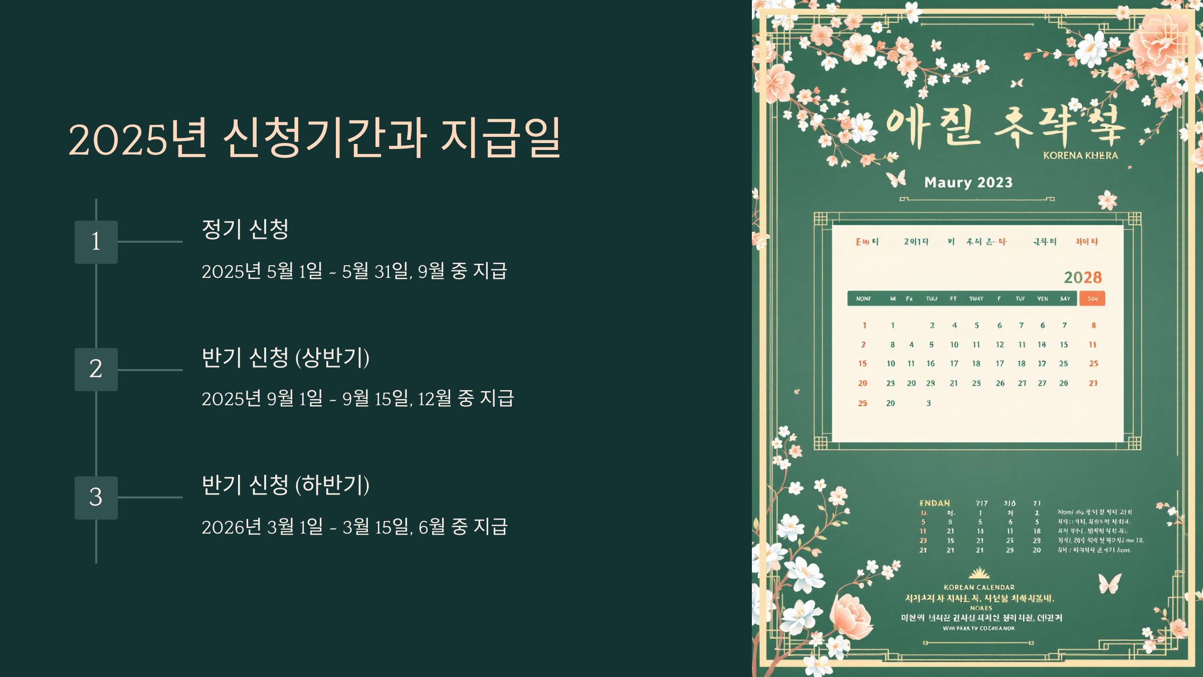 📢 놓치지 마세요! 신청 기간을 놓치면 추가 신청이 가능하지만, 이 경우 지급액의 90%만 받을 수 있으니 반드시 정해진 기간 안에 신청하는 것이 좋아요.