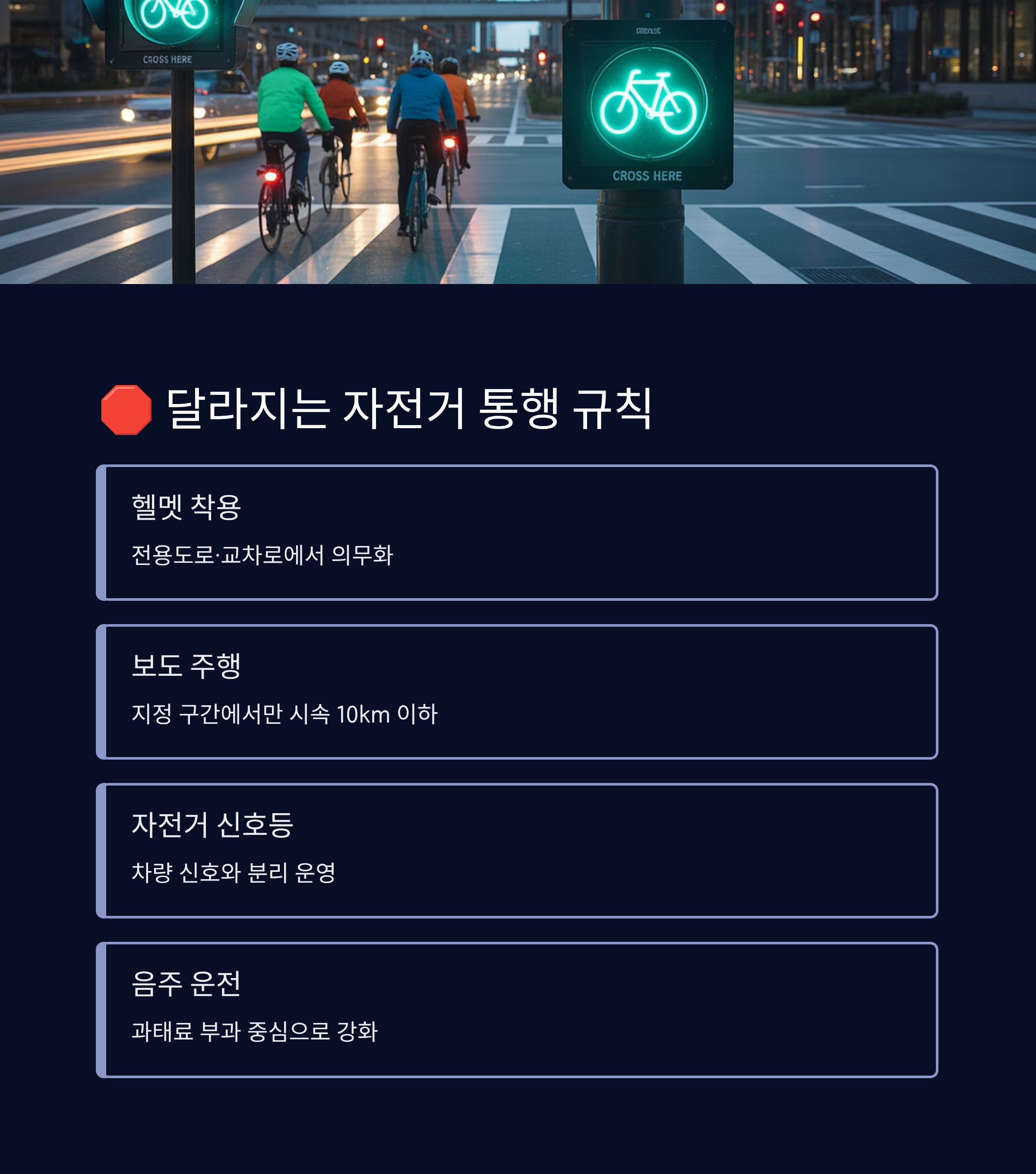 그리고 음주 자전거 운전 규제도 강화돼요. 경찰 단속이 기존보다 2배 이상 늘어나며, 음주 단속에 적발될 경우 기존의 '계도 중심'에서 '과태료 부과 중심'으로 바뀌어요. 실제로 2024년 한 해 동안 음주 자전거 사고가 급증한 통계를 바탕으로, 제도적 보완이 이뤄진 셈이에요.