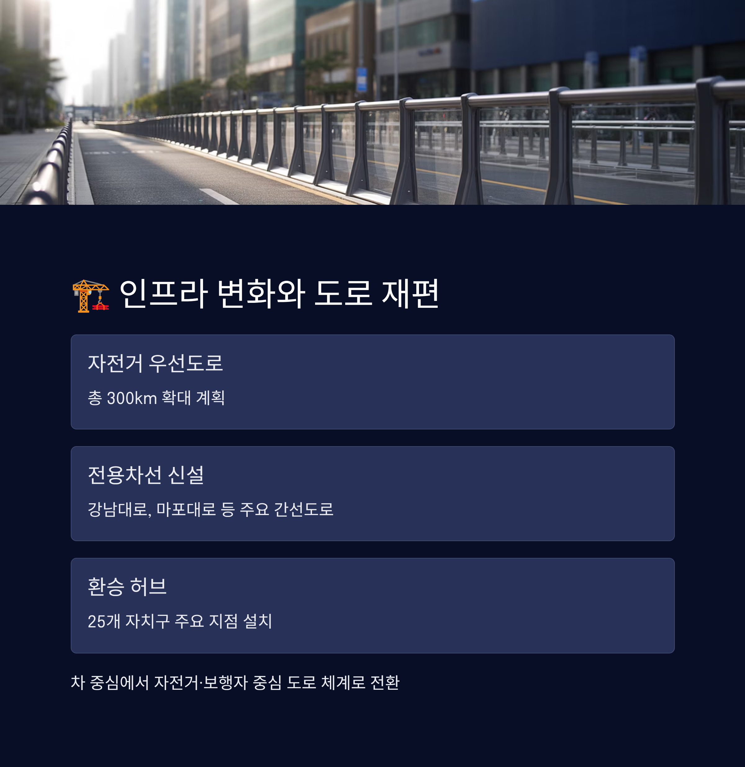 📌 본 콘텐츠는 2025년 9월 기준 서울시 정책 발표 및 언론 자료를 바탕으로 작성되었습니다. 실제 정책 적용 시기나 세부 내용은 서울시 공식 발표에 따라 변동될 수 있어요. 자세한 정보는 서울시 교통정책과 또는 자전거정책과 홈페이지를 참고해주세요.