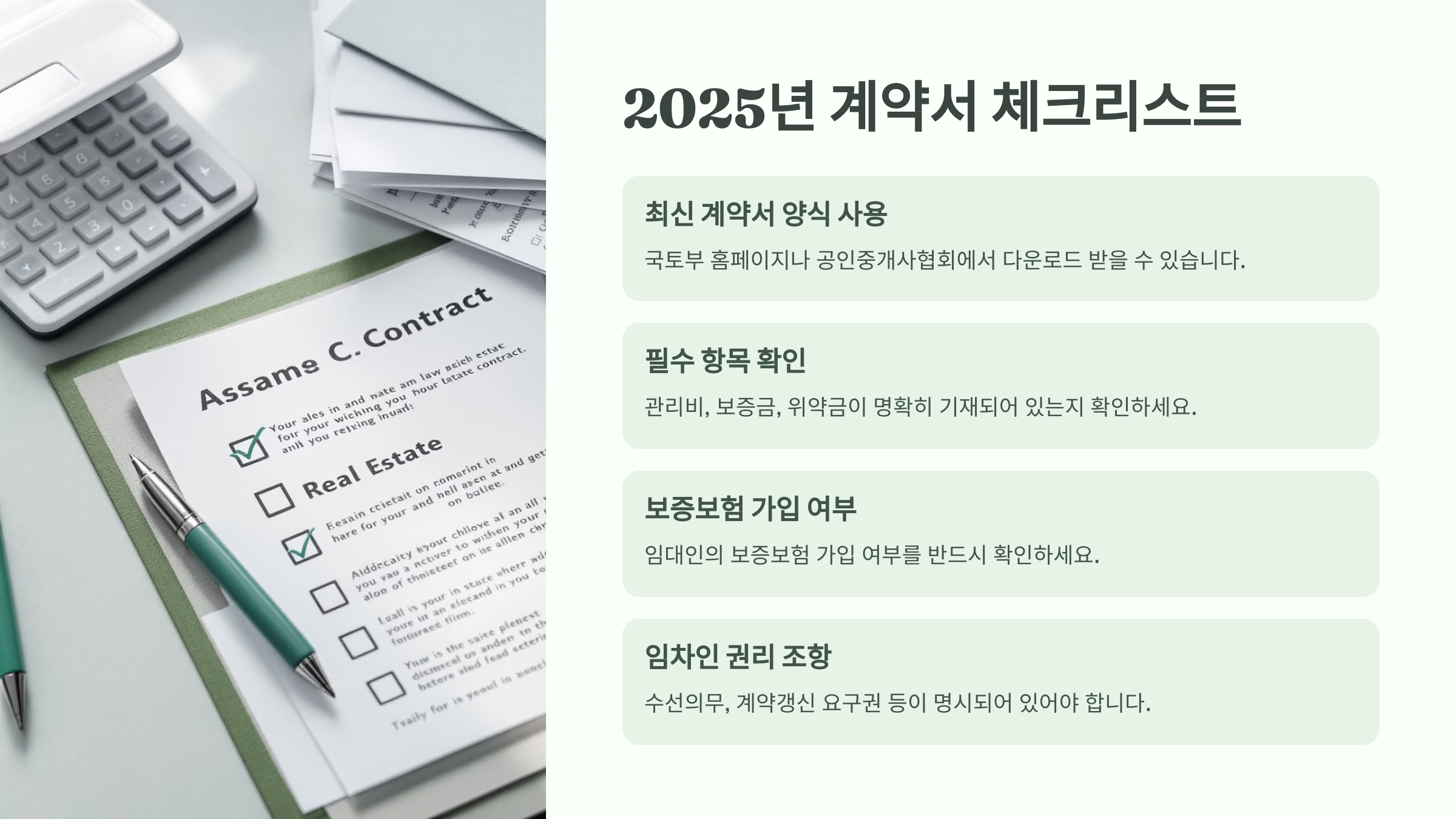 계약 전 반드시 체크해야 할 2025년 기준 항목들을 정리해볼게요. 이 체크리스트만 챙겨도 분쟁 걱정은 훨씬 줄어들 거예요!
