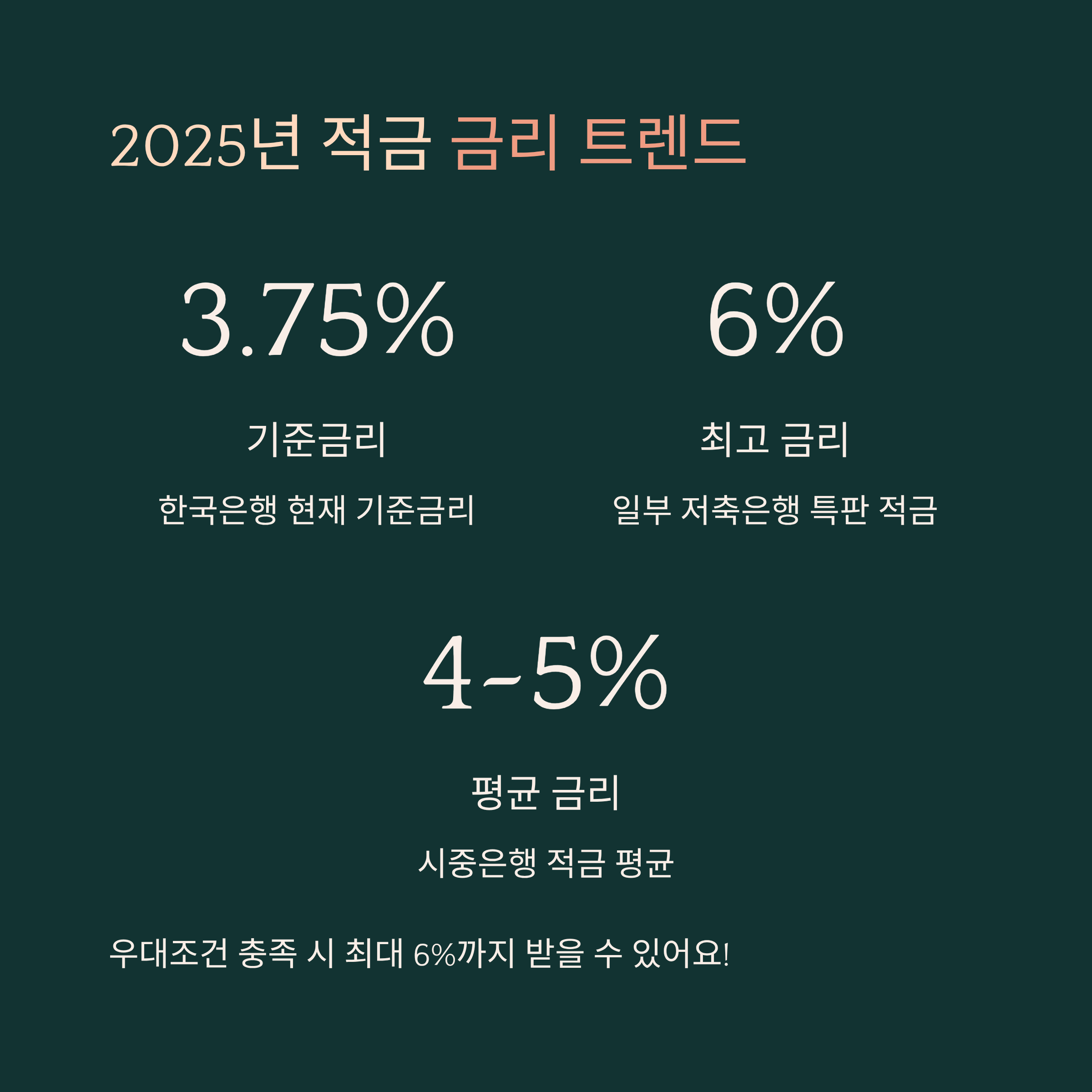이처럼 용어만 잘 알아도 어떤 적금을 선택할지 훨씬 쉽게 판단할 수 있어요. 다음은 2025년 현재, 시장의 금리 트렌드에 대해 자세히 살펴볼게요!