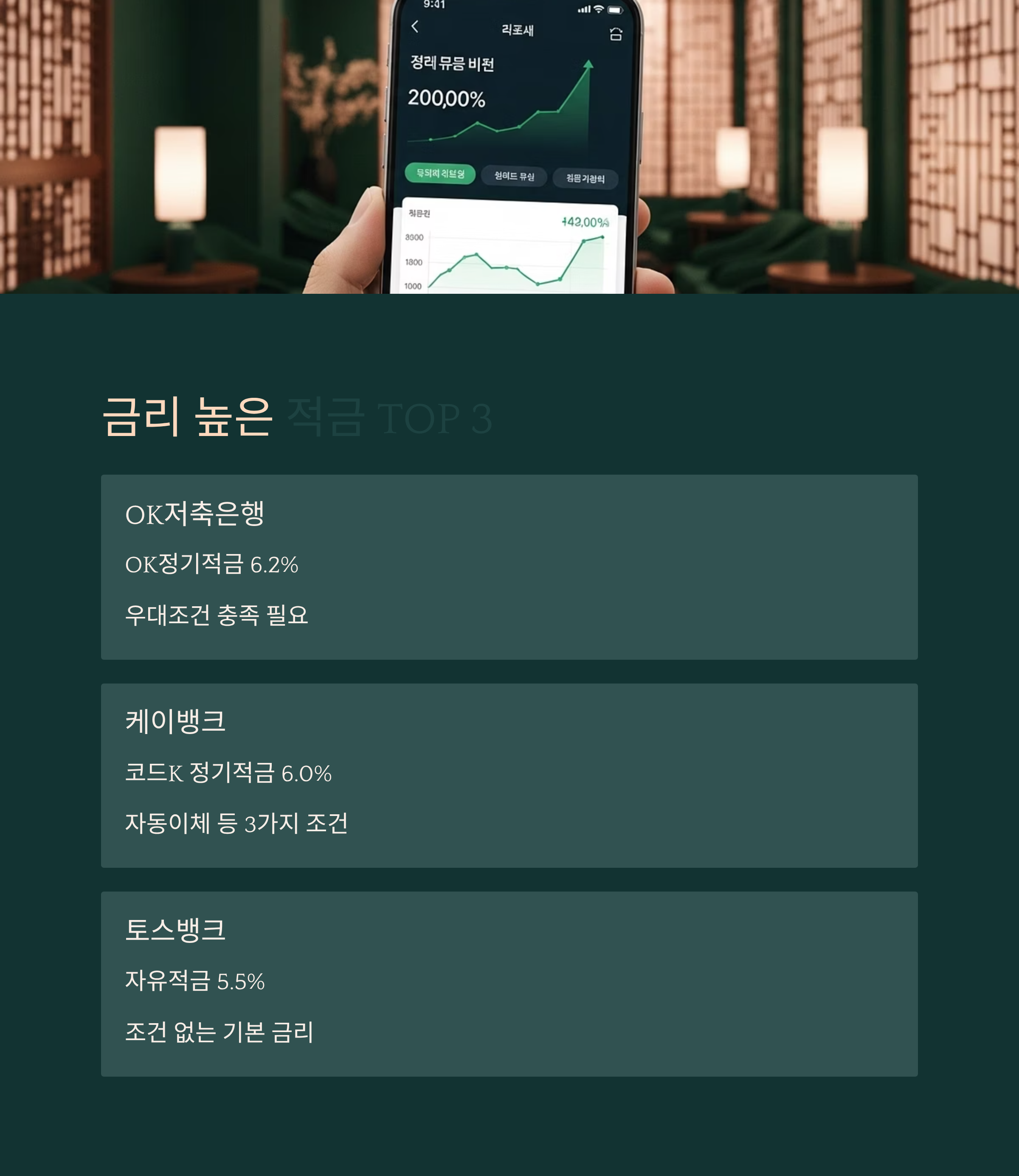 2025년 현재, 금리가 가장 높은 적금 상품은 어디일까요? 금리만 보고 무조건 가입했다가 우대 조건을 못 채워서 후회하는 사람도 많기 때문에, 실제 이자 수익과 조건을 꼼꼼히 따져야 해요. 아래에서 인기 많은 고금리 상품 TOP 5를 소개할게요.