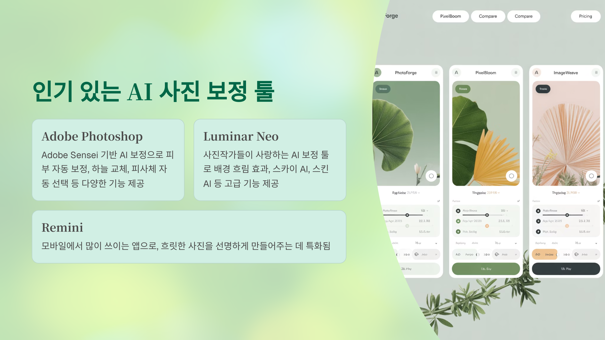 다음은 ✨ 인기 있는 AI 사진 보정 프로그램들을 소개할게요! 어떤 앱이 가장 잘 맞을지 함께 골라보자구요! 😉